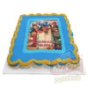 Pan sabor vainilla, relleno de mermelada de fresa, cubierto con betún de merengue y decorado con oblea. (Pastel para 30 o 60 personas)