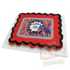 Pan sabor vainilla, relleno de mermelada de fresa, cubierto con betún de merengue y decorado con oblea. (Pastel para 30 o 60 personas)